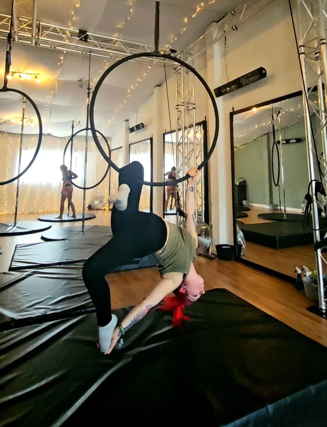 We opened our doors in January 2023 and have since grown to offer classes nearly every day of the week. Our schedule includes evening classes for adults, covering pole, aerial hoop, aerial sling, dance, and more. We also regularly host workshops in flying pole, flexibility, pole silks, hoop choreography, pole straps, and other specialties, often featuring guest instructors.