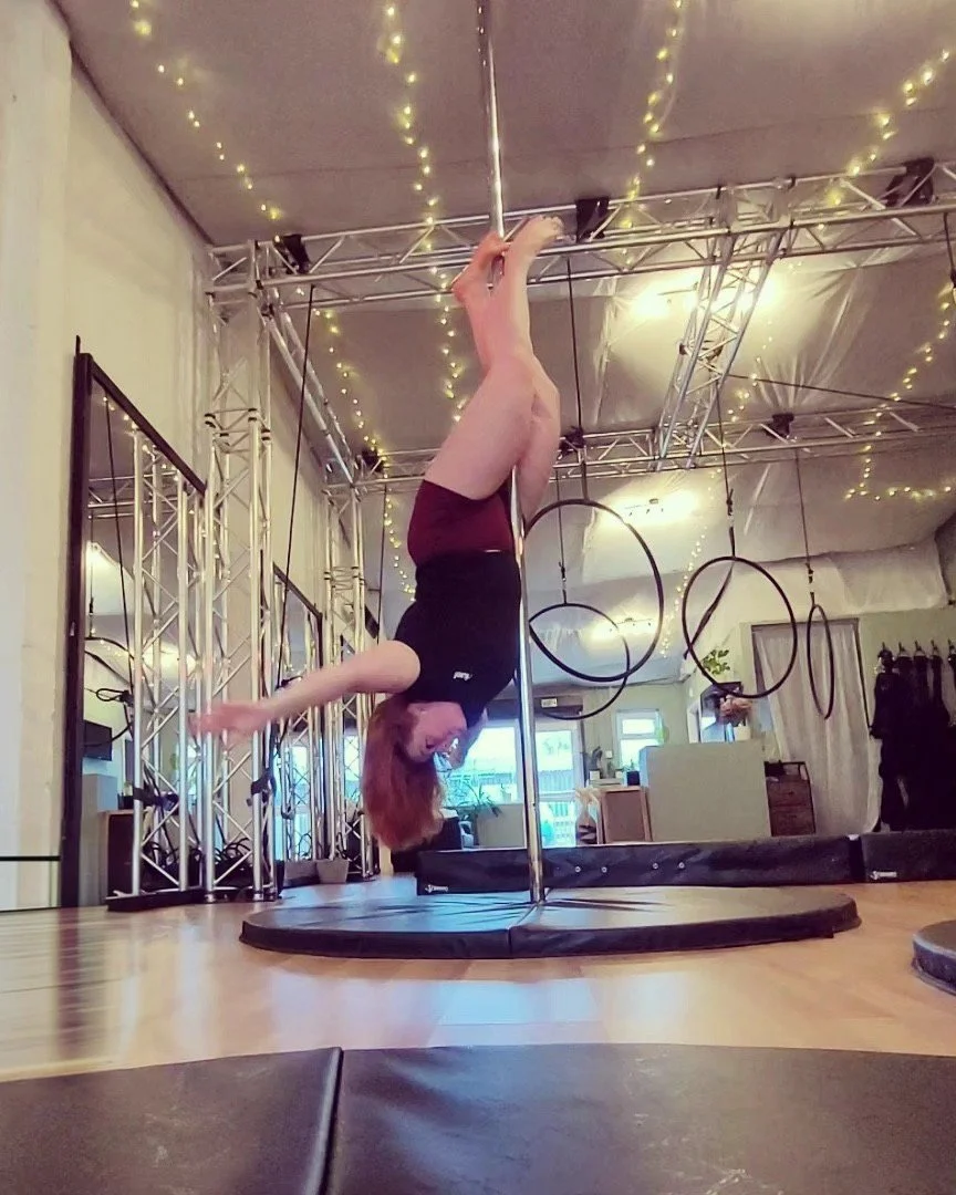 Laura started teaching for us in September 2025. She has an extremely varied background in movement, and found her love of pole in 2022. She has developed her training to incorporate all this experience in order to build a unique, fluid style on the pole! Come join her classes soon!