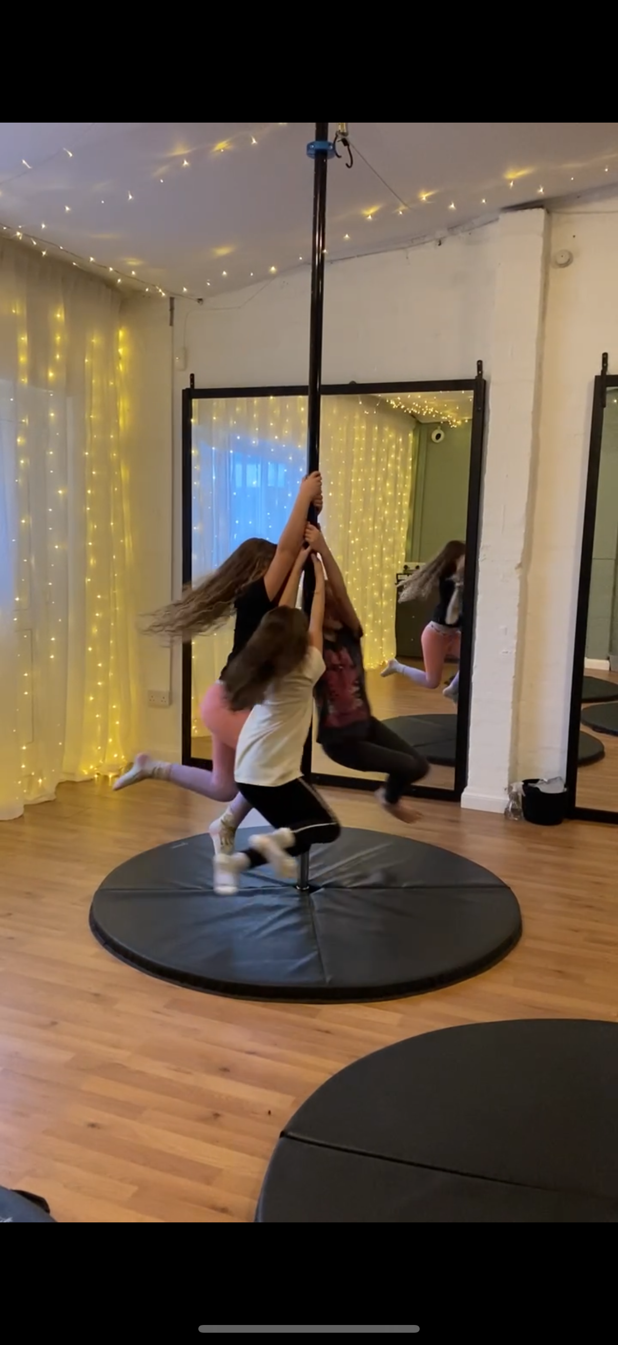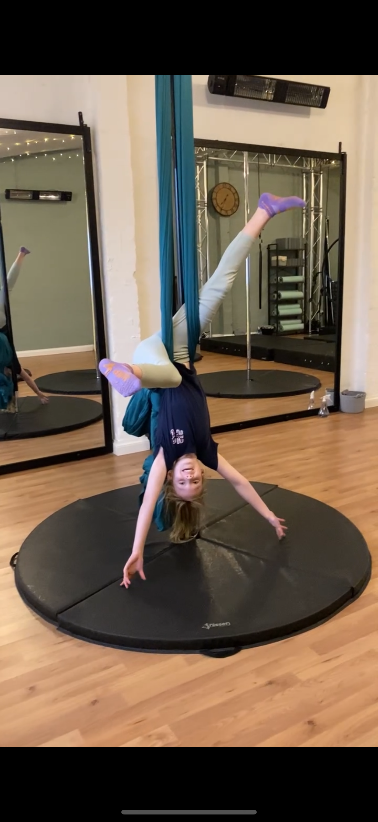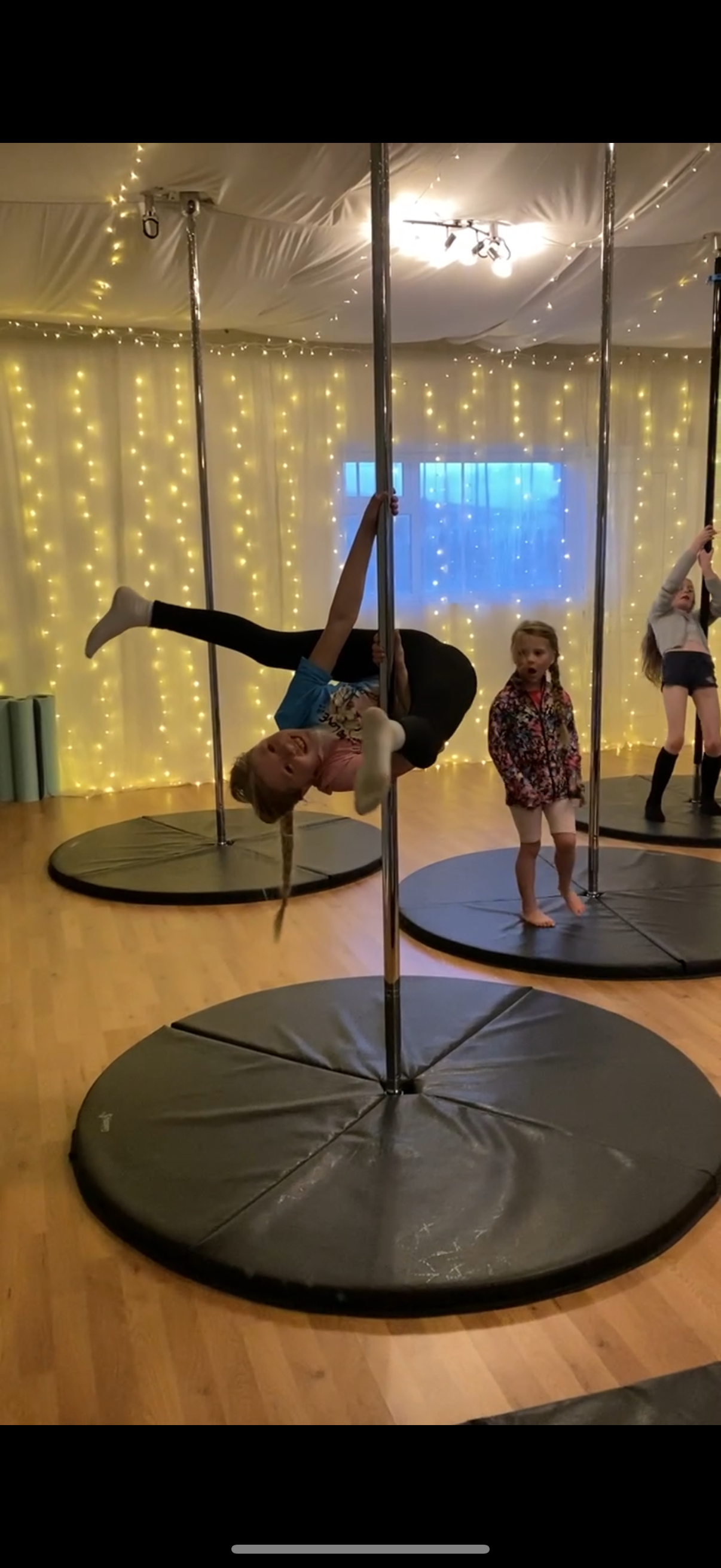 In addition to our adult classes, we also offer classes for kids aged 5 - 16. Each week, we introduce two different pieces of equipment, which are rotated regularly to keep the sessions exciting. These may include aerial hoop, aerial sling, pole, pole straps, pole silks, flying pole, and aerial silks. The equipment is changed weekly to ensure a fun and varied learning experience.